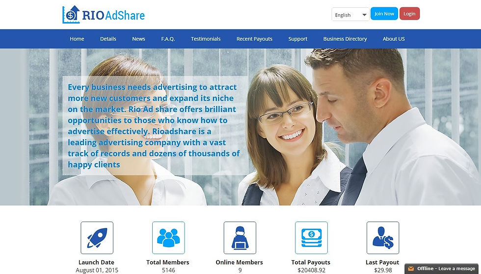 Other Features : > Ad Pack plans for everyone's budget (from $1-$20) > Revenue sharing for every ad pack until 120%-145% returns! > Earnings from Paid-to-View Ads! > $5 minimum add funds! > No Membership Fee! > 10% reffral income > 0% referral commissions > $5 Minimum Cashout and $200 Max Cashout per Day! > Quick Payments; Payout requests are processed from Mon-sunday! > View 10 Ads Daily to Claim Revenue Sharing! > member to member balance transfer > processer to processer balance transfer > 10% referral commissions!